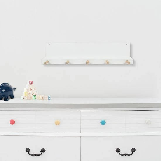 Bring charming style to your kiddo’s bedroom with this The Big One 5-Hook Wall Shelf.