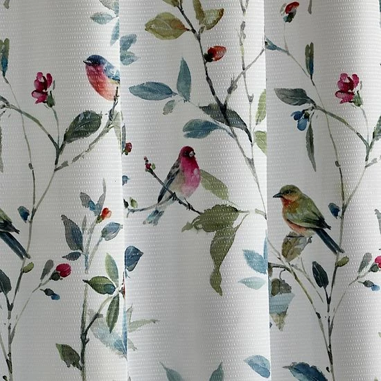 - Breathe new life into your bathroom with the Arboretum shower curtain. This lightweight, machine-washable woven features a textured finish with a watercolor-like print of birds perched on branches with colorful leaves and blooming flowers.