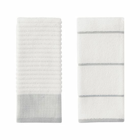 - Revamp your morning bathroom routine with the Bianca Stripe Hand Towel 2 pack from The Big One. This understated design 2 pack a versatile addition to any bathroom. This perfectly curated set features one white towel with areas of gray stripes and one white towel with a high low striped body and textured gray hem to create a dynamic look.