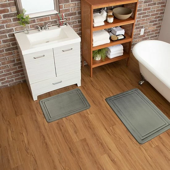 Easily add a luxurious look and feel to your morning shower routine with this border memory foam bath rug from The Big One.