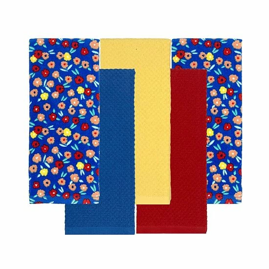 Brighten up your kitchen with the bold primary colors of this coordinating kitchen towel set from The Big One.