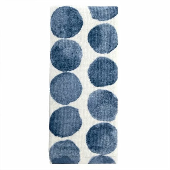 - Spot-on style. Give your bath a fun, fresh update with the Logan Bathroom Collection. Included are two hand towels. One towel is featured in solid terry with a woven weft insert and banded hem. The other towel is featured in soft cotton velour with a blue-tone dotted print.