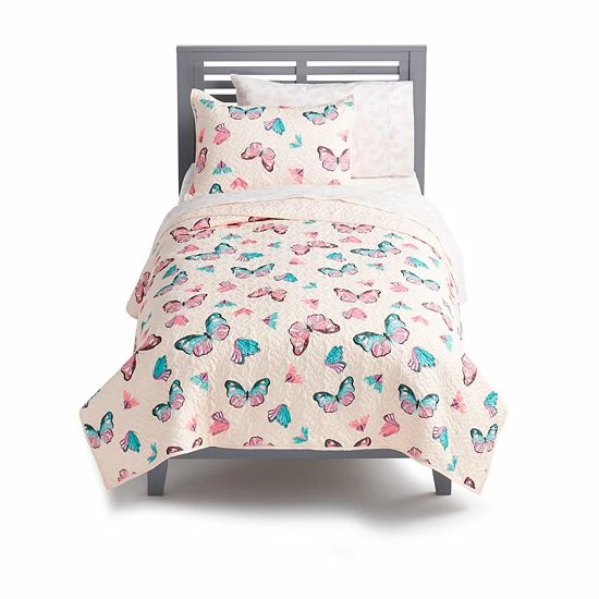 She’ll adore the bright colors and beautiful design of this butterfly quilt set by The Big One Kids.