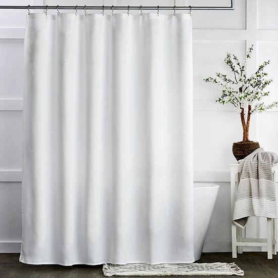Freshen up your bathroom ambiance with this The Big One® Solid Woven Shower Curtain.