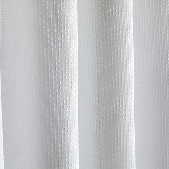 - Bring a clean, neutral look to your space. This Solid Woven shower curtain is lightweight and machine-washable for easy care and features a solid, textured weave. 12 button holes line the top for easy hanging. Use of a liner is recommended; liner and hooks not included.